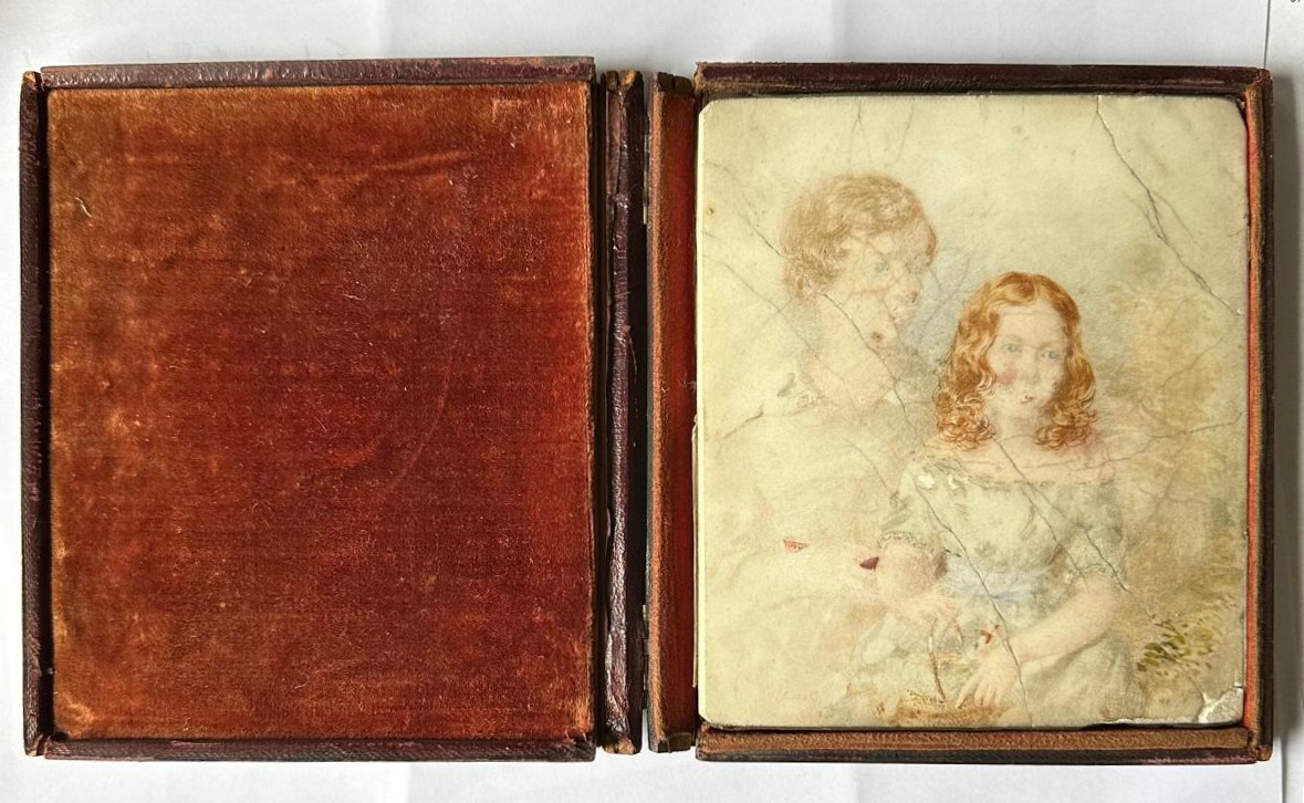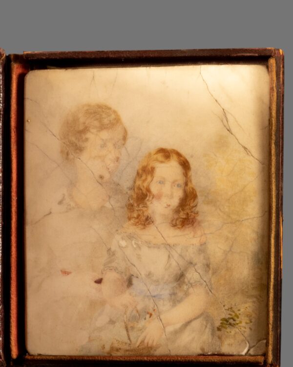 A Cased Ceramic Portrait Miniature of Two Children, mid-19th Century, accompanies this painting, which came from the same house in Chelsea, London.