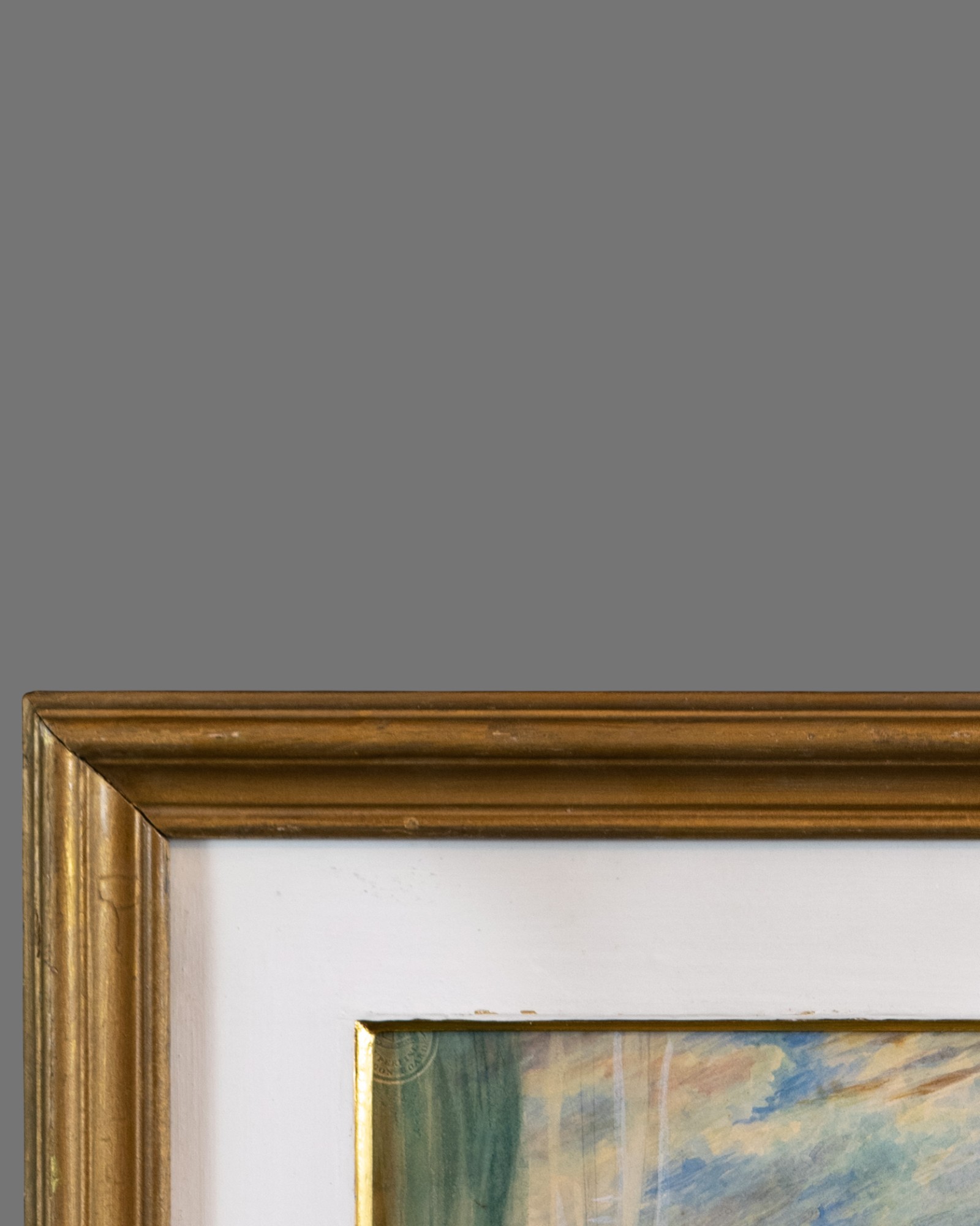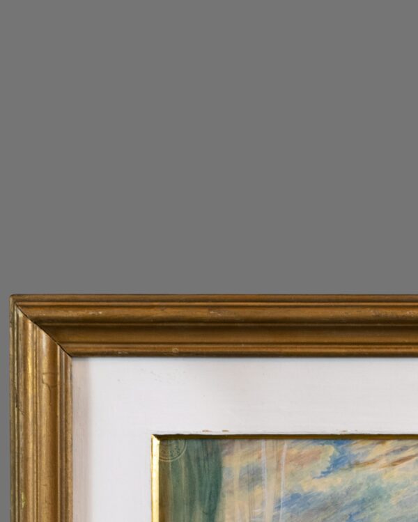 The painting is enhanced by a fine gilt frame, which complements the period character of the work and adds to its overall presence. Measuring approximately 54 x 46 cm, it displays exceptionally well and retains a strong visual impact.