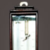 This example is housed in its original mahogany case with bevelled glass, fitted with a silvered scale, mercury thermometer, and characteristic U-shaped tube with sliding adjustment scale. The lower section features the adjustable kidney-shaped aperture engraved with barometric readings, along with a subsidiary dial.