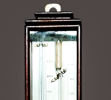 Good antique condition overall, showing honest age-related wear consistent with early 19th-century instruments. The mahogany case and glass are well preserved with minor surface marks. Scales and engraving remain clear and legible.
