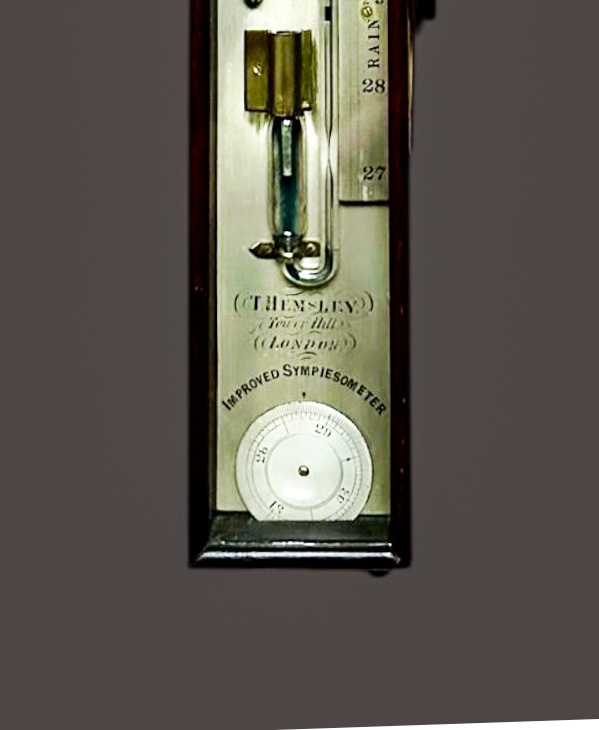 A fine and rare Victorian sympiesometer by T. Hemsley of Tower Hill, London, an important maker of early meteorological instruments. The sympiesometer was developed as a compact alternative to the mercury barometer, particularly favoured for marine and domestic use during the early 19th century.