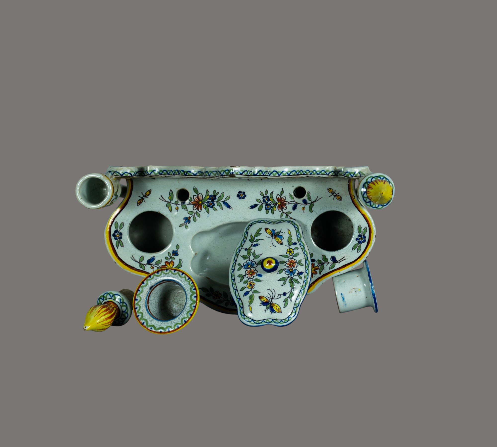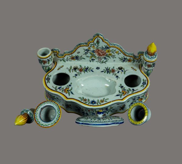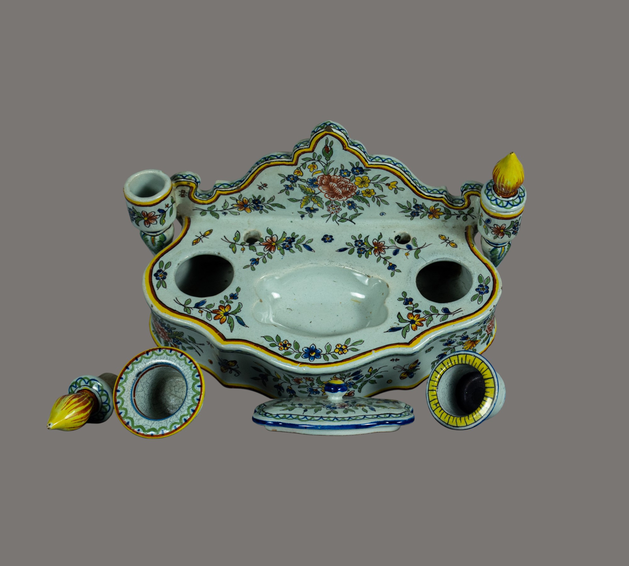 A French Faience Double Inkwell, Rouen Region, 19th / Early 20th Century