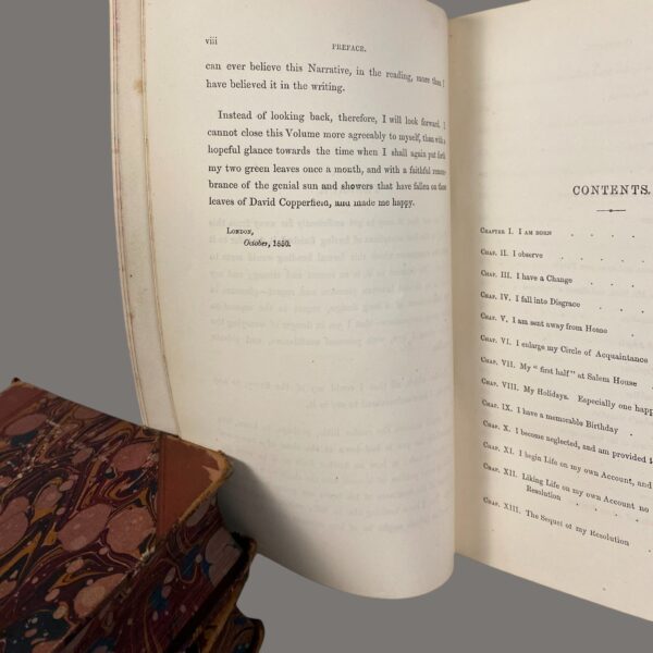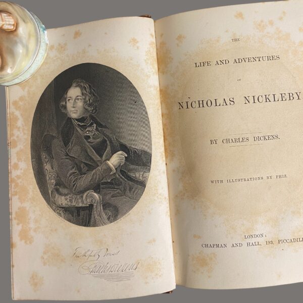 Embark on a journey through the golden age of Victorian literature with this exquisite four-volume set of Charles Dickens’ works, published by Chapman & Hall Ltd, London, in the mid-19th century. This collection includes “Nicholas Nickleby,” “Martin Chuzzlewit,” “David Copperfield,” and “The Pickwick Papers”, some dated between 1844 and 1850. One volume features a facsimile autograph signed “Faithfully Yours, Charles Dickens”, adding a touch of historical charm.