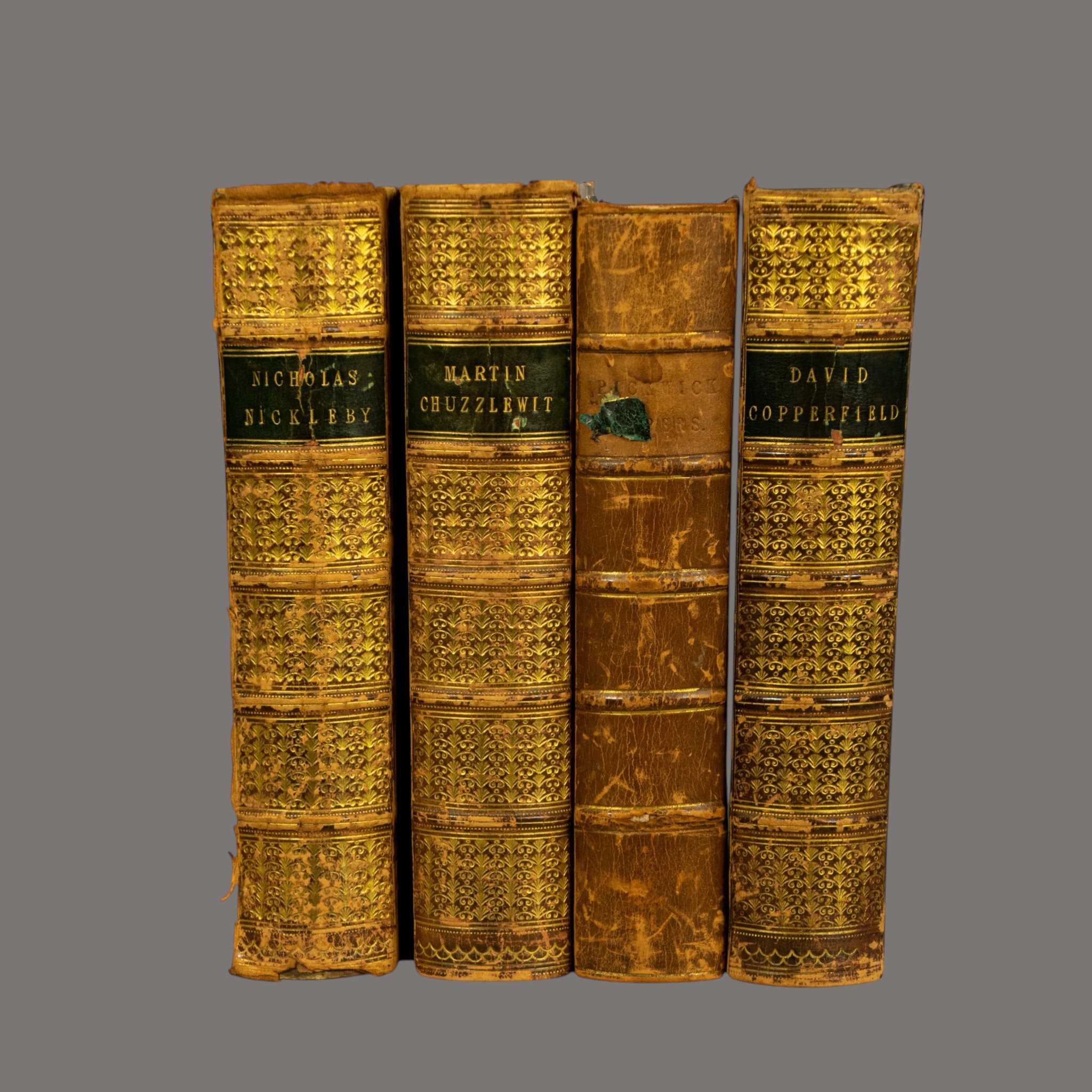 Charles Dickens, Books, Antique, 4-Volume Set, Half Calf Leather Binding, 19th Century