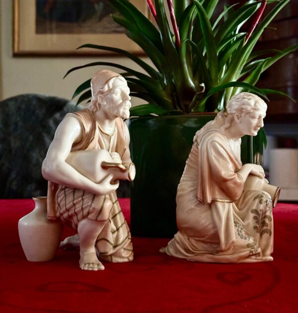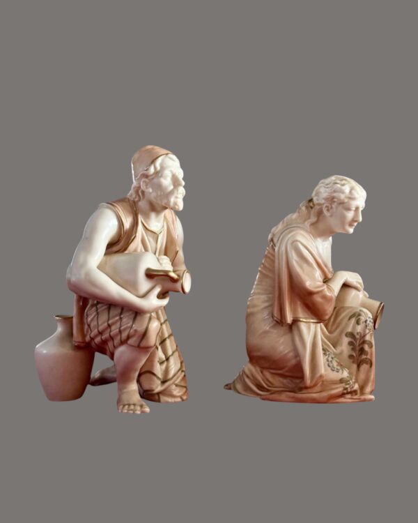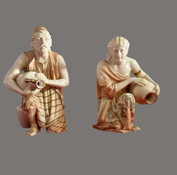 Antique Pair of Royal Worcester Water Carrier Figures – Attributed to James Hadley, Late 19th to Early 20th Century