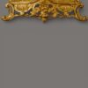 The circular enamel dial, with Roman numerals and finely pierced hands, is framed by a beaded gilt bezel and set within an elaborately scrolled case adorned with floral swags, foliage, and decorative cartouche motifs. The lower section features pierced and scrolling ornament with a central floral basket, creating a balanced and highly decorative silhouette.
