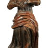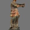 Artistry: Finely carved wooden form featuring delicate facial features and complex drapery.