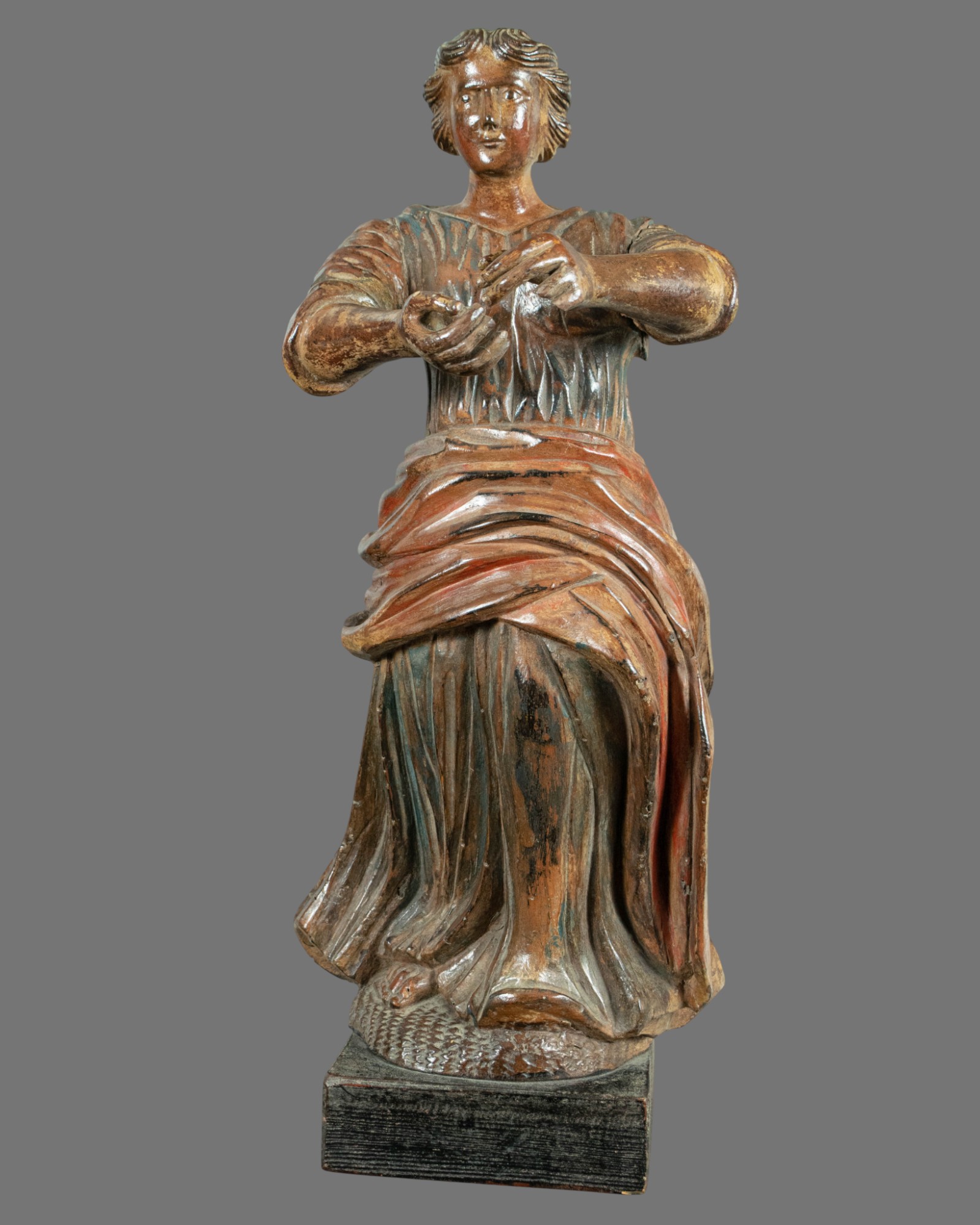 Finish: Polychrome decoration that has aged beautifully, offering a glimpse into the vibrant aesthetic of 18th-century religious art.