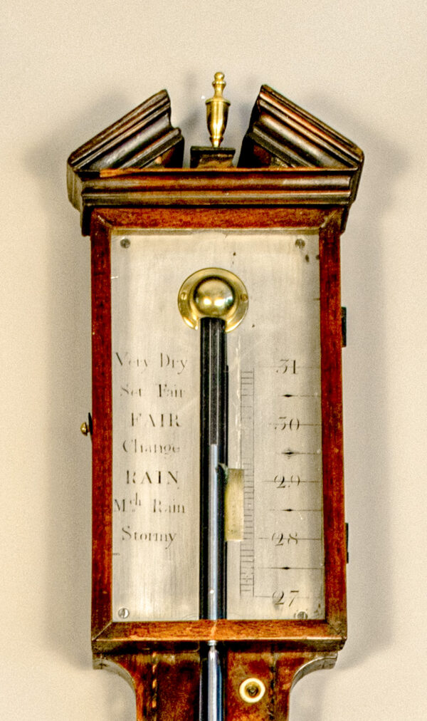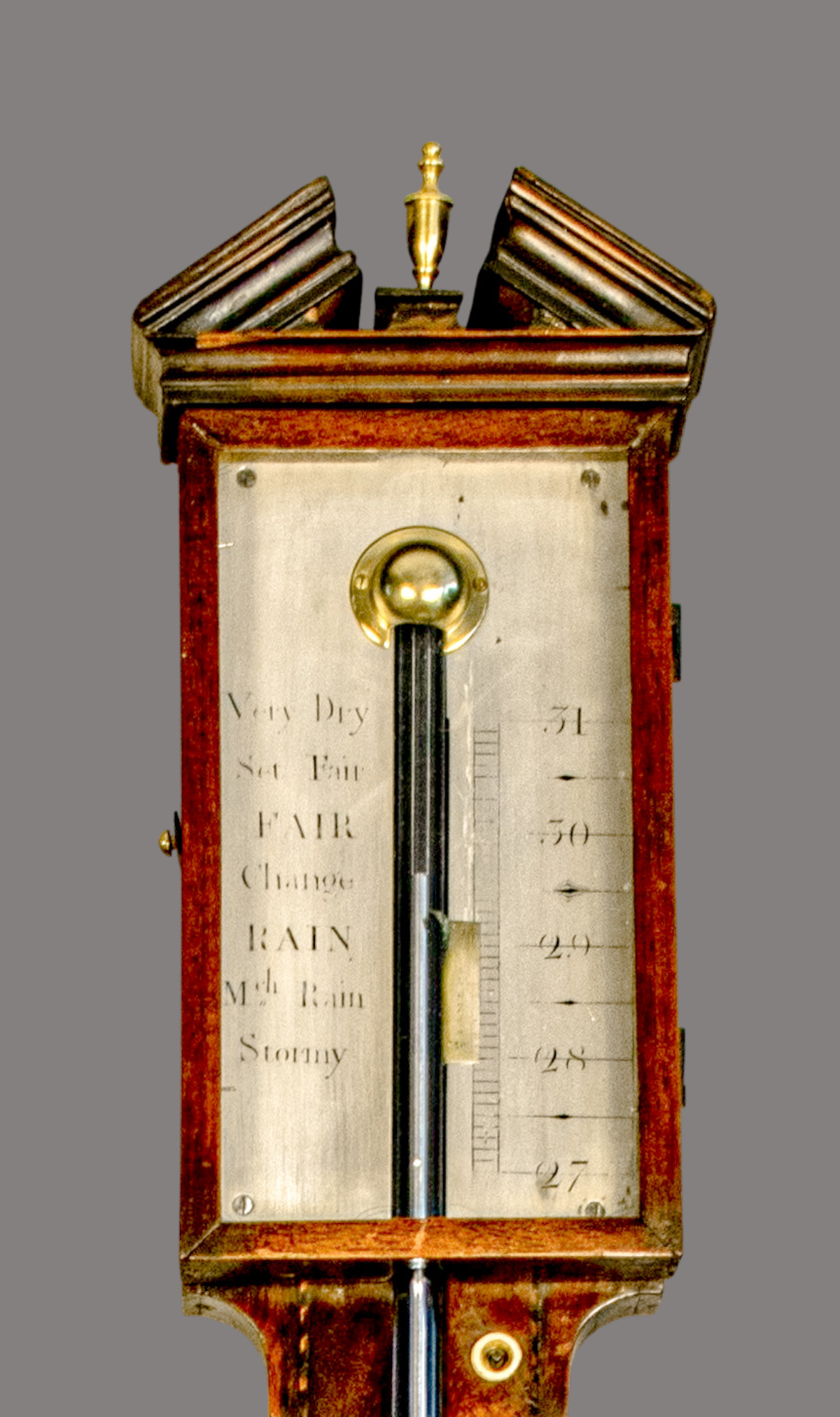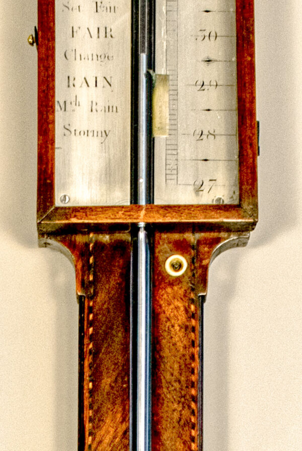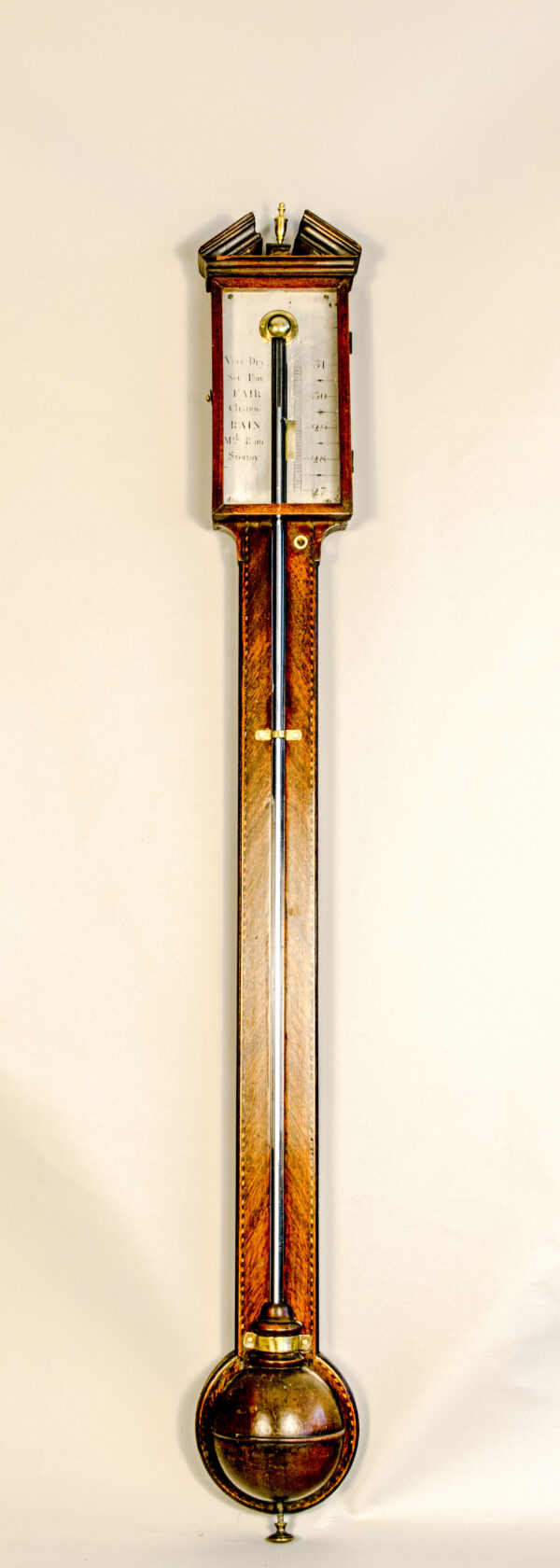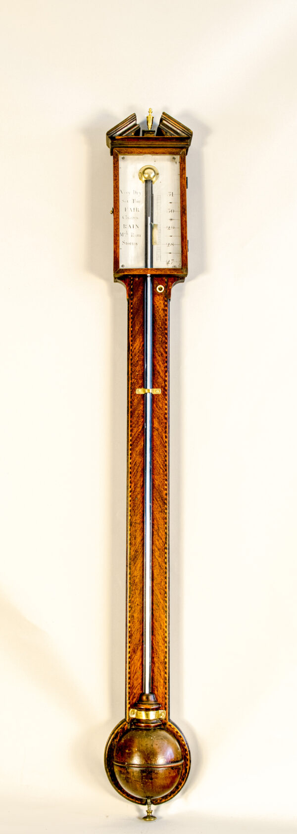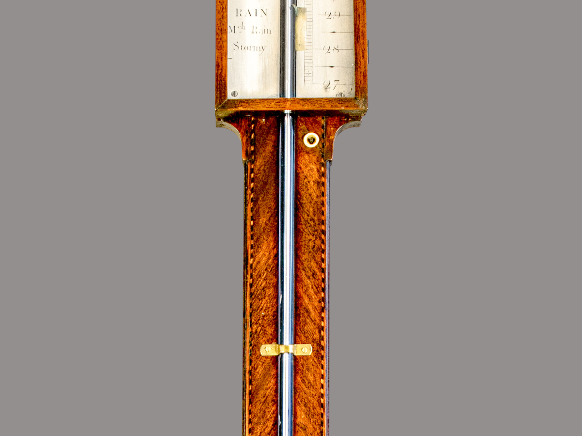 This refined Georgian stick barometer was produced by John Whisker of Spurriergate, York, a respected regional instrument maker who took over the family business from his father Matthew in 1804. Following John’s death in 1824, the firm continued under his widow, Elizabeth and later his son Matthias, trading until 1880.