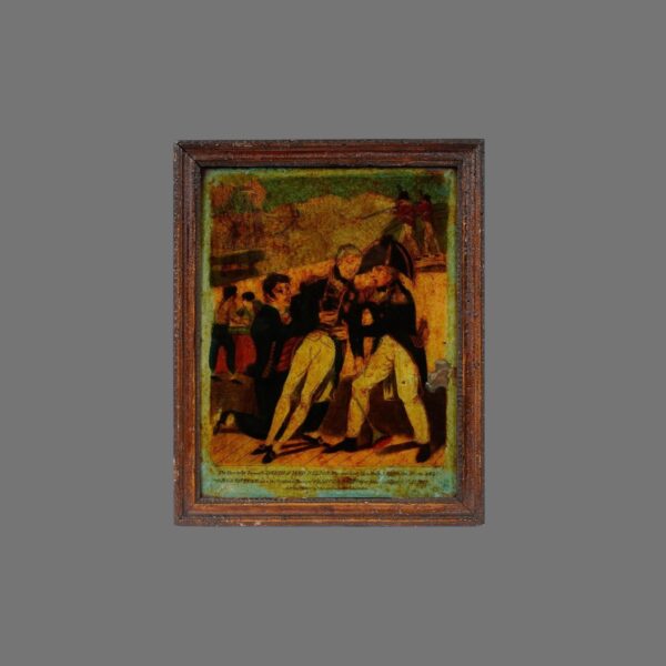 The survival of both the glass and the original frame enhances the historical integrity and decorative appeal of this example. The rich patina and surface wear contribute to its authentic period character, making it a highly evocative piece of early 19th-century British commemorative art.