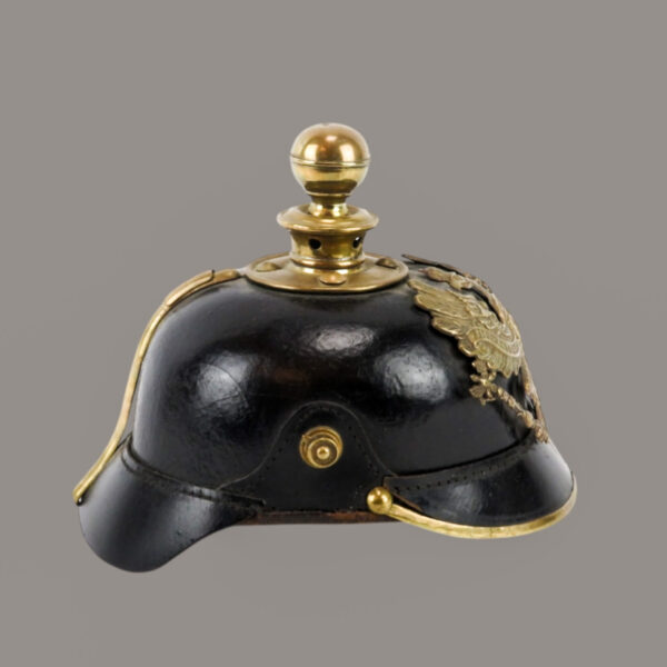 The Pickelhaube is one of the most iconic and instantly recognisable forms of Imperial German military headgear. This artillery variant — identified by its distinctive Kugel finial in place of the infantry spike — represents the Prussian Artillery branch at the height of the German Empire, from the late 19th century through the First World War. Pieces of this completeness and quality are increasingly difficult to source.