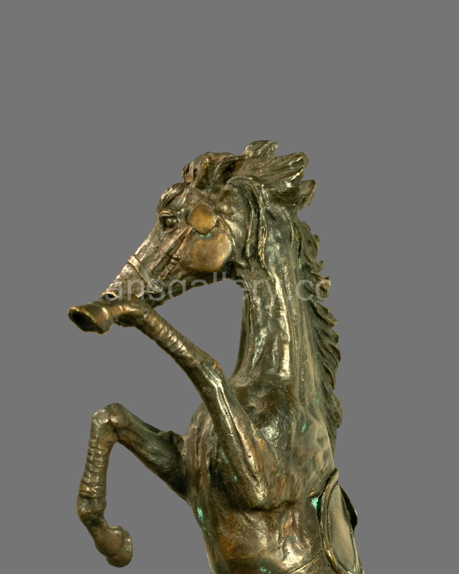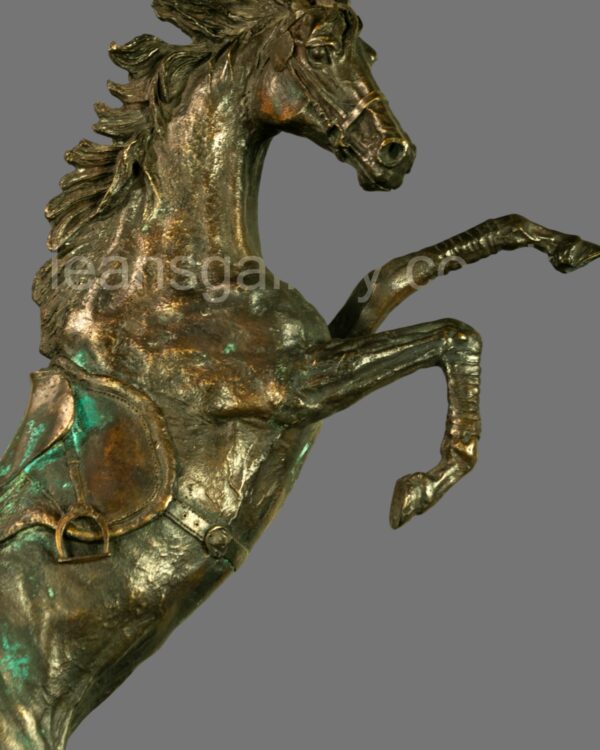 Although unsigned, the quality of modelling and finish reflects the influence of traditional French animalier sculpture, making this an impressive decorative and collector’s piece. Ideal as a statement sculpture for interiors, equestrian collections, or period-style décor.