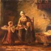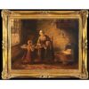 Oil Painting Antique German Mother and Children in a Cottage signed
