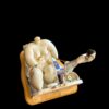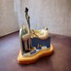 Artfully hand-painted, this resin sculpture is securely mounted on a contoured wooden plinth, designed to complement the energetic flow and unique shape of the figures.
