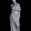 The figure stands gracefully upon a cylindrical base and displays beautifully observed anatomical proportion, serene facial expression, and finely detailed folds of drapery. Subtle surface tonality enhances the sculpture’s sculptural depth and visual warmth.