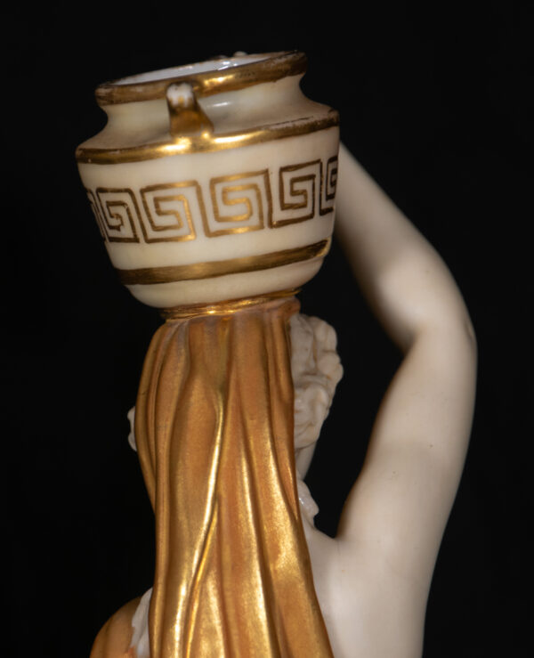 Classical Maiden Water Bearer — Continental Gilt and Bisque Porcelain Figure with Amphorae, Late 19th / Early 20th Century