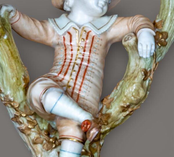 Pair of Royal Worcester Figural Porcelain Candlesticks, Boy and Girl in Tree Form, Late 19th Century
