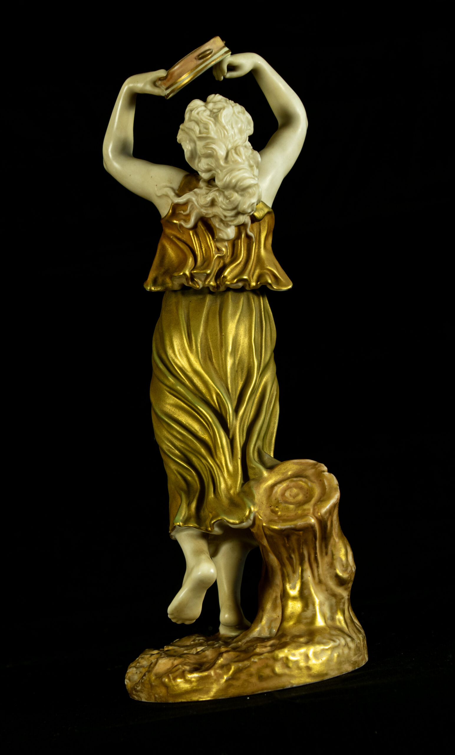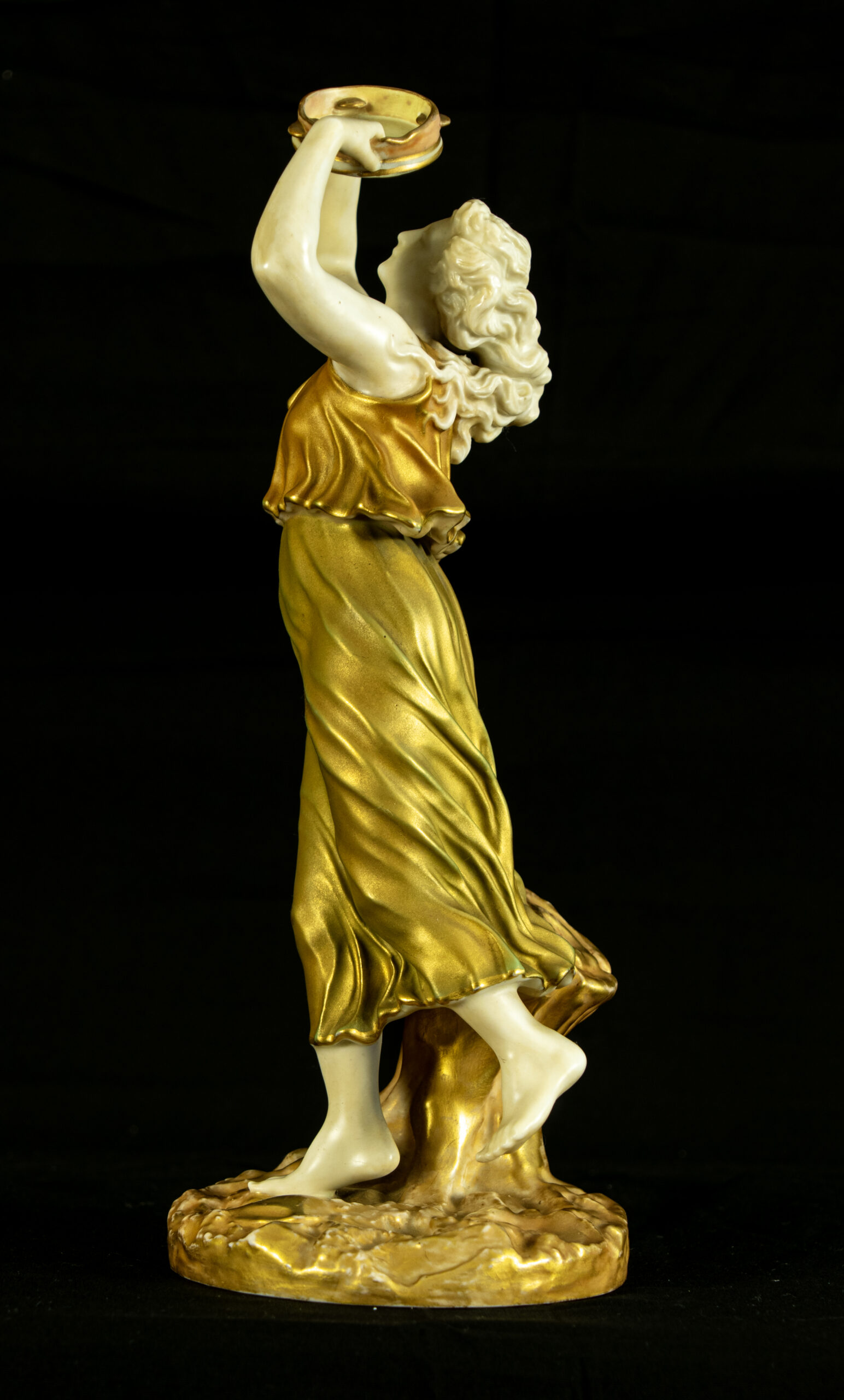 Royal Worcester Gilt Porcelain Figure Lady with Tambourine by James Hadley, Model 1441, Late 19th, Early 20th Century