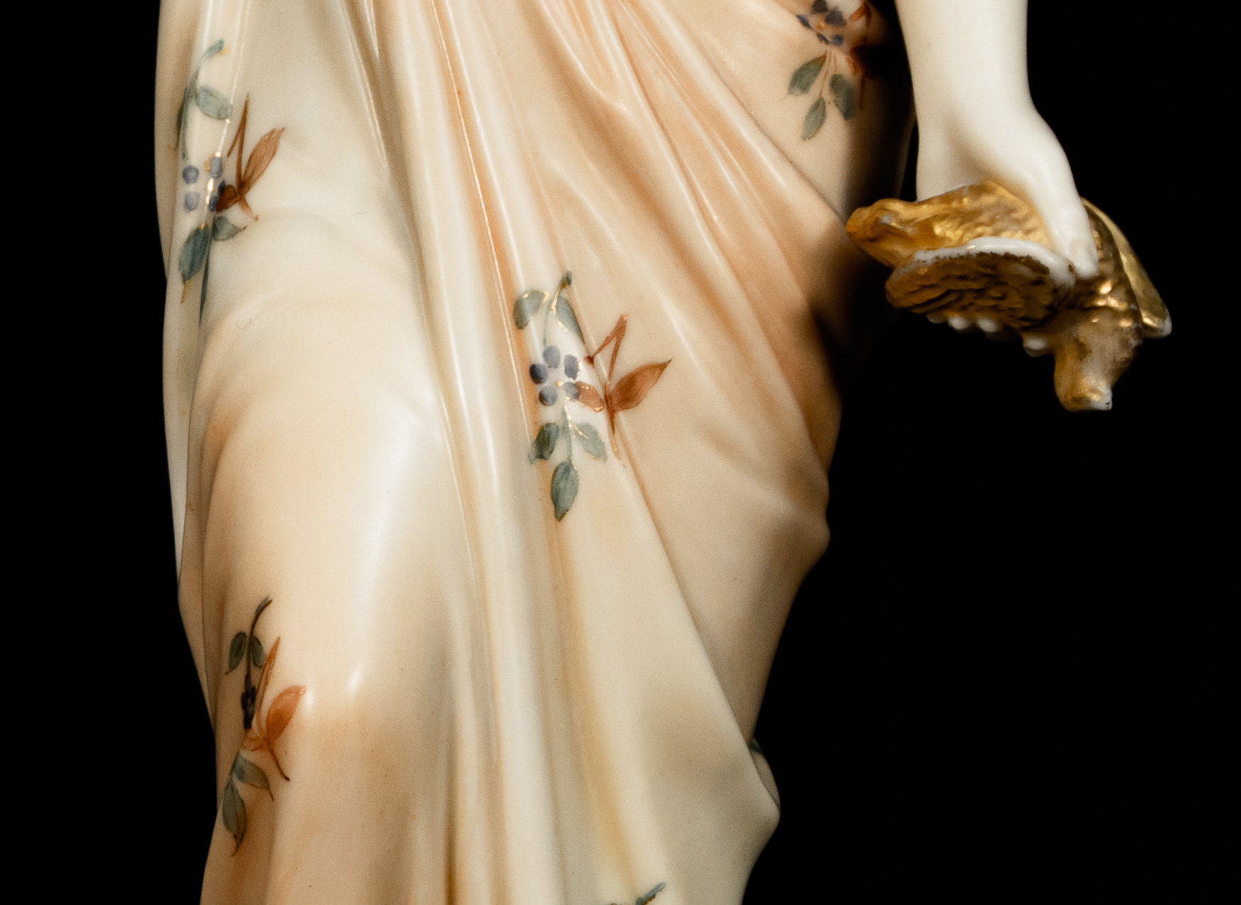 The quality of modelling, the fluidity of the drapery, and the refined hand-decoration are hallmarks of Royal Worcester’s finest figurative production. Standing on circular bases with gilded detailing, the figures display beautifully as a pair and reflect the firm’s mastery of classical themes and emotional storytelling.