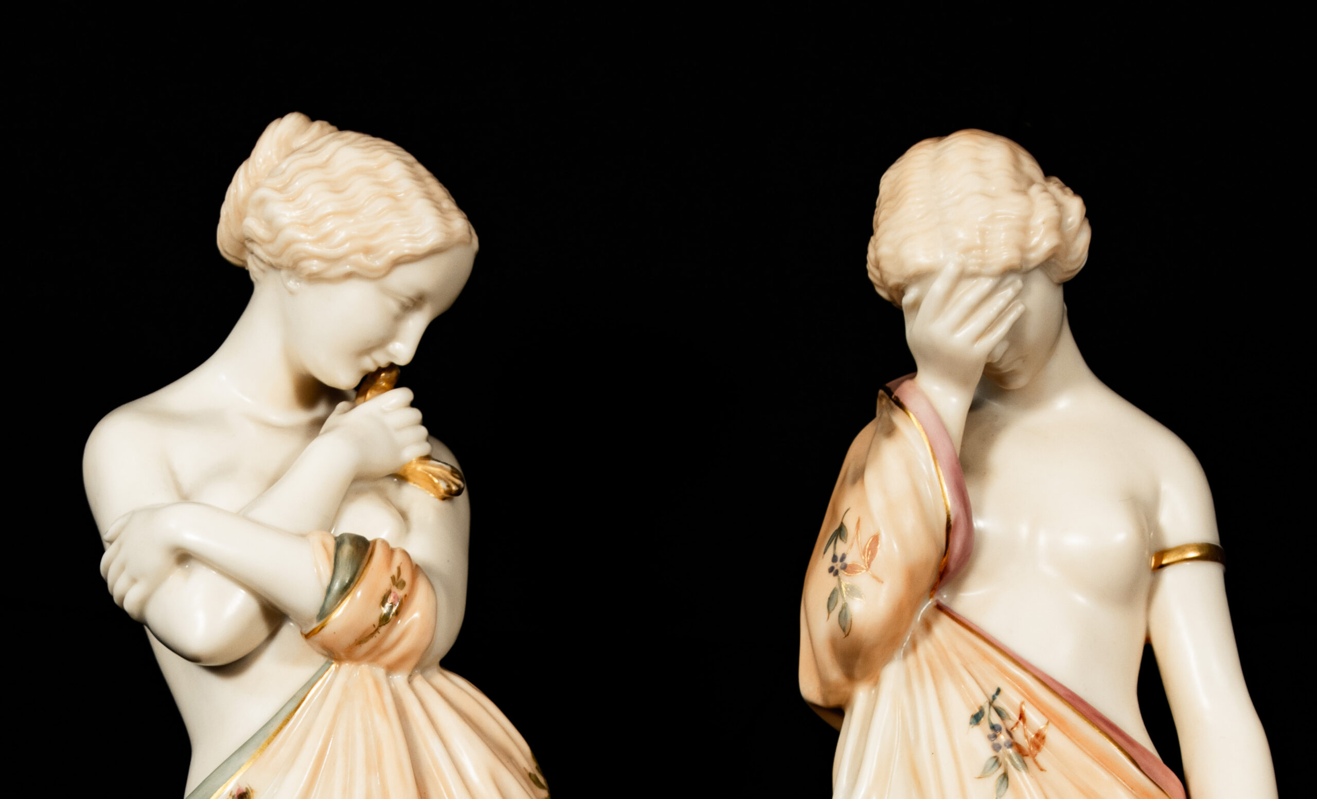 Royal Worcester Porcelain Figures “Joy and Sorrow” – Pair of Classical Allegorical Figures