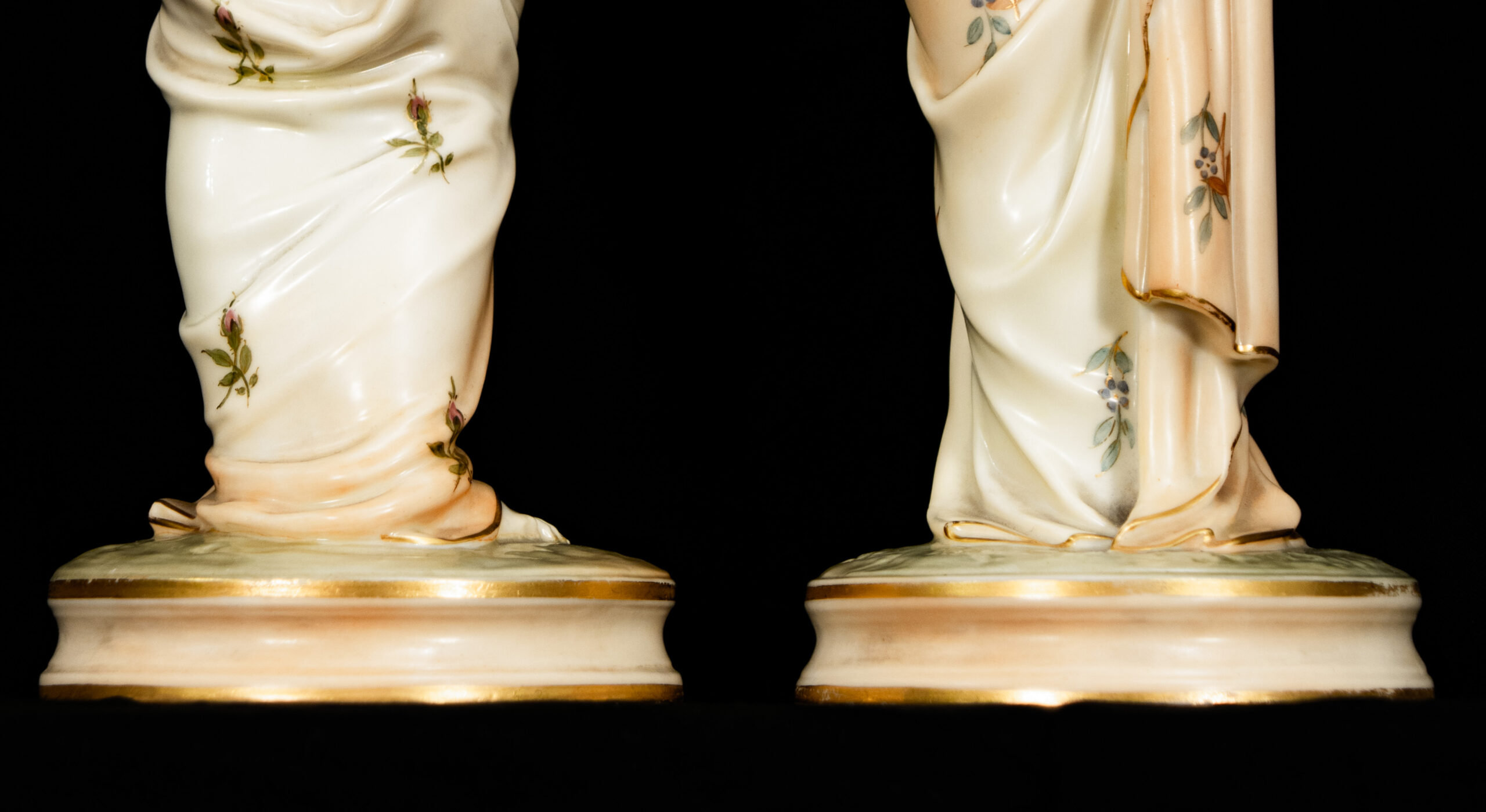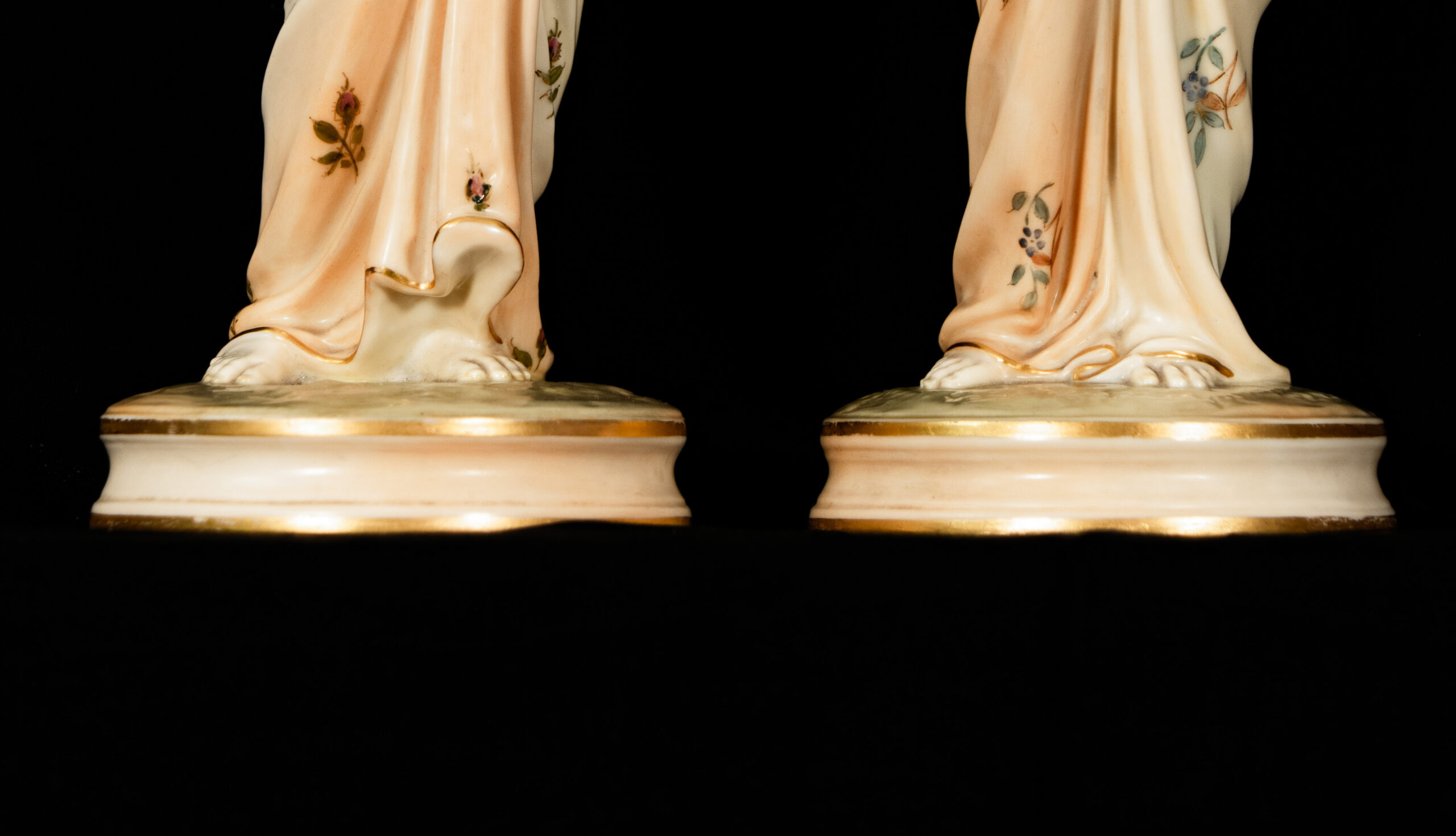 Highly sought after by collectors of English porcelain, Royal Worcester figurines, and allegorical art, this pair offers both decorative elegance and strong artistic significance. They make an outstanding centrepiece for a refined interior or a distinguished addition to a serious porcelain collection.