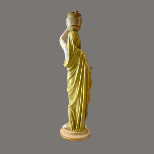 An exceptional and unusually large Royal Worcester porcelain figure of a Grecian water carrier maiden — a work of rare sculptural ambition that stands among the finest figural productions of the late Victorian and Edwardian periods.