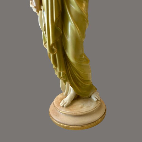 At 51.5 cm, the scale of this piece is particularly significant. Large Royal Worcester figures of this type were produced in limited numbers and intended for prominent display within the most refined interiors of the period. They are considerably scarcer than standard cabinet pieces and command serious collector attention.