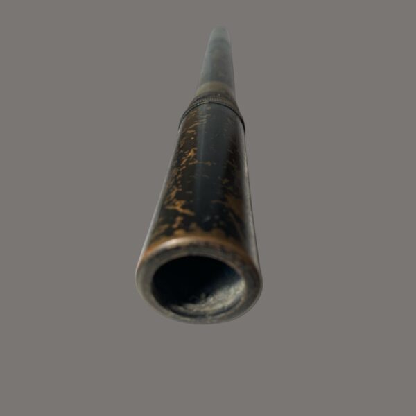 An original British World War II TEL. SIGNTG No.22D Mk I sighting telescope, manufactured by H.B.M. Co. and issued for use with the standard 6-pounder anti-tank gun. Of brass and steel construction, the scope retains its original finish and is clearly marked with designation, maker’s details, and the British broad arrow acceptance mark. The instrument features internal crosshairs incorporating an ‘R’ lead indicator for engaging moving targets, together with an extending sun shield, reflecting its practical battlefield application. Showing notable age-related wear consistent with service use, this scarce optical instrument represents an important component of Britain’s wartime anti-tank defences and is a highly collectible piece of military equipment.