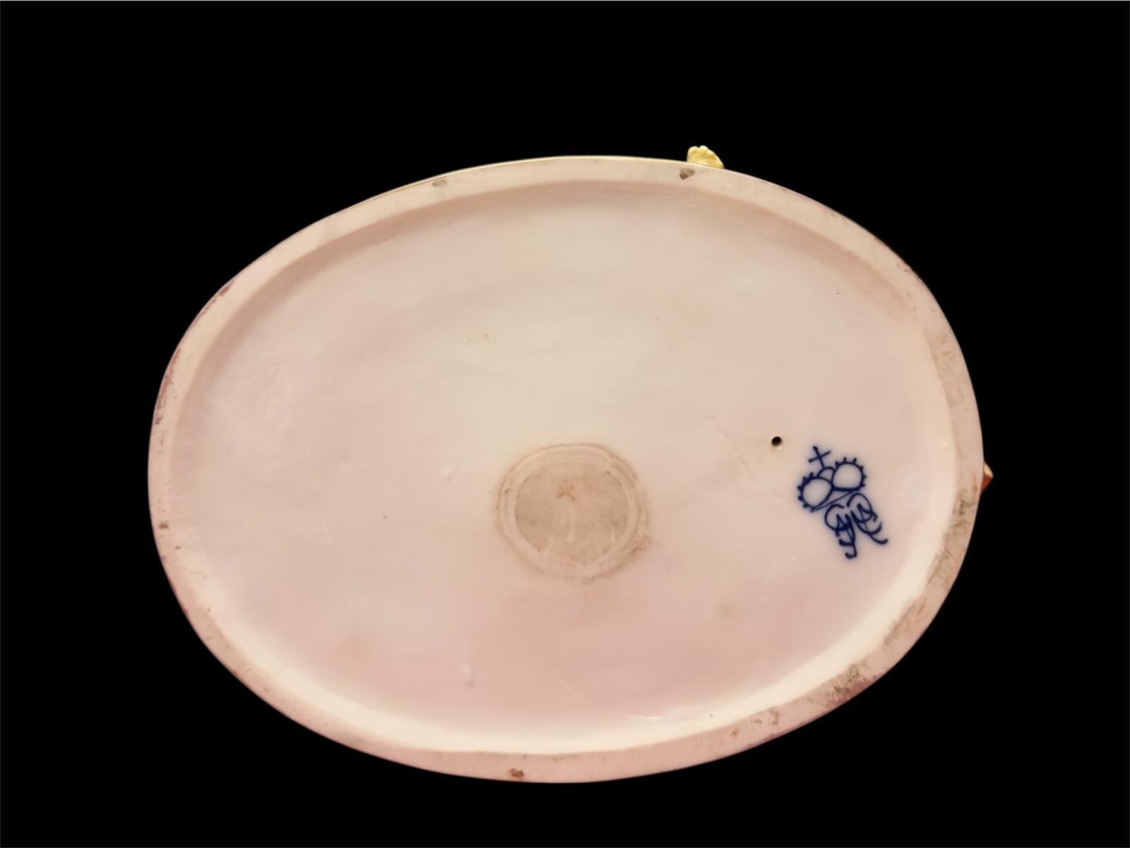 Bearing an underglaze blue crowned “N” mark to the underside, this exceptional piece is likely of Dresden manufacture, circa 1890–1910.
