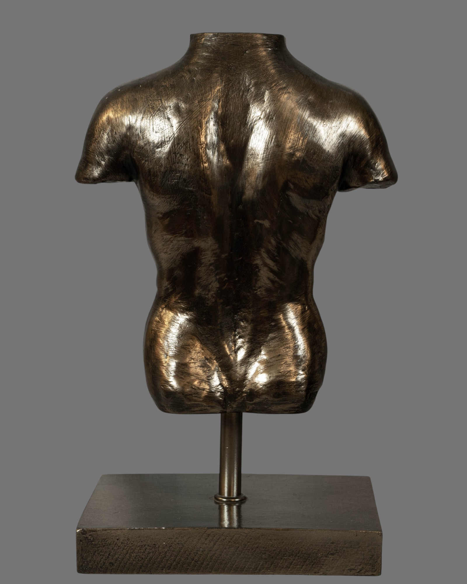 Designed for display on a table, shelf, console, or mantle, this sculptural torso serves as both an aesthetic focal point and a refined decorative object, appealing to collectors and interior designers alike.