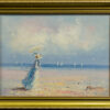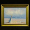 In the distance, sailboats drift like dreams upon the horizon, their masts piercing a sky painted with strokes of lavender, cerulean, and pearl — a testament to Charlot’s command of atmosphere and mood. The beach itself is alive with texture — flecks of shell, shadow, and shimmering tide pools — each rendered with the confident, expressive touch that defines the Impressionist tradition.